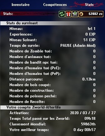Wet clothing | If you stay in the rain your clothes get wet, when you jump in the water also. | -Vous avez 3 fois plus rapidement froid-Vous avez un malus de poids.-When the bar is at the maximum The weight malus is 10% | Take cover.Dry yourself by standing next to a campfire or wipe with dry cloth.-Change clothes. |