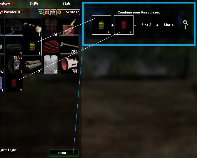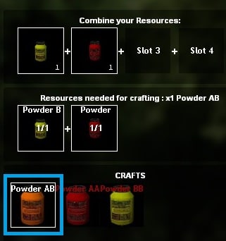 ☰ 1.2 Lorsque vous cliquez sur le bouton 'CRAFT' alors apparait la barre des combinaisons et ajoutez votre combinaison