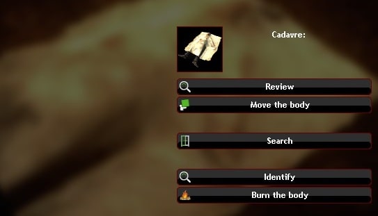 Alors quand vous fouillez le corps, restez sur vos gardes. Il vous est possible de brûler le corps avec de l'essence et des allumettes. Vous pouvez identifier le cadavre pour savoir de qui il s'agit. La photo du joueur s'affiche ainsi qu'un bouton permettant de voir son profil steam.