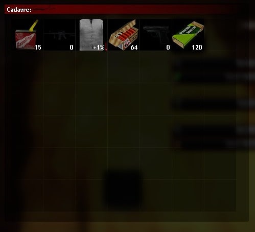 ☰ Lorsque vous fouillez un cadavre, vous verrez le matériel qu'avait le joueur avant de mourir.