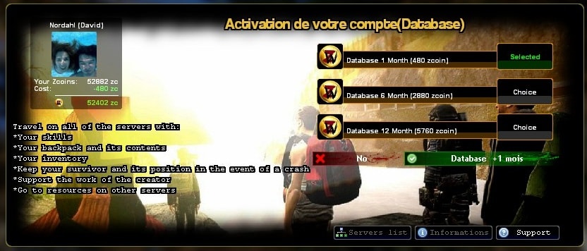 Voilà à quoi ressemble la boutique. Faites votre choix et validez en cliquant sur le bouton vert, "Base de données +X mois".