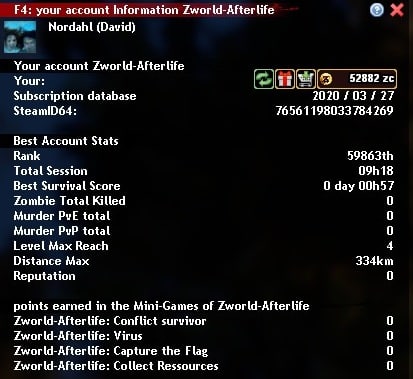 Notez que Zworld-Afterlife est toujours en cours de développement et continue d'évoluer. Grâce aux Zcoins, vous soutenez le projet et l'auteur.