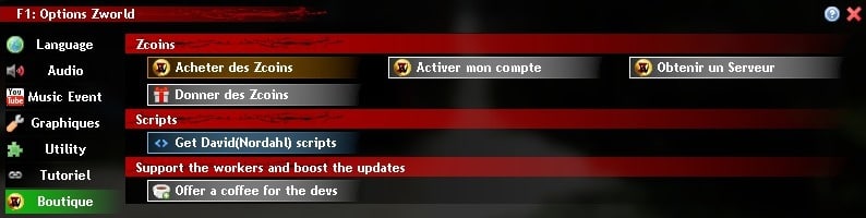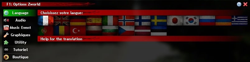 Les paramètres clients sont constitués de plusieurs sous-réglages à adapter selon les besoins. C'est ici que vous pouvez regler votre Zworld sur la langue qui vous convient parmis une sélection de 21 langages.