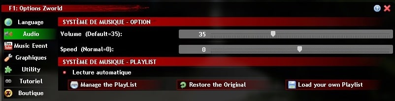 Vous pouvez régler le volume des musiques d’ambiance et la vitesse de lecture de celles ci.