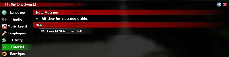 Help Message : Permet d'activer/désactiver les messages d'aide en jeu.