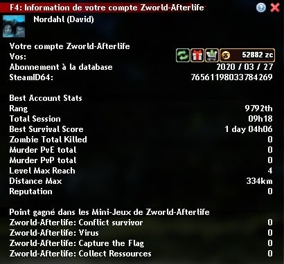 Total Time played on Zworld :Temps total joué sur Zworld-Afterlife en heure